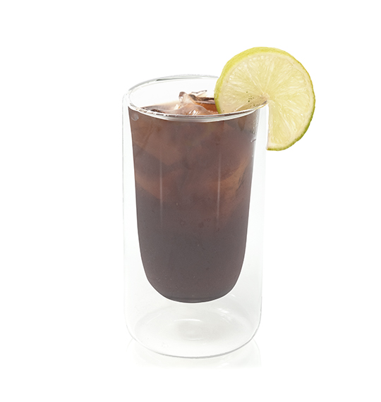 Rum, squeezed lime, coca cola and ice